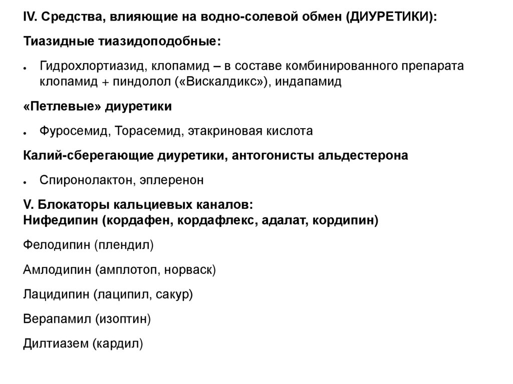 Калий-сберегающие диуретики, антогонисты альдестерона