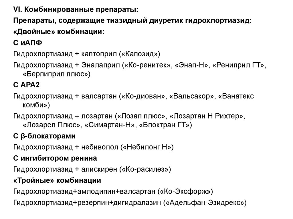 Гидрохлортиазид, клопамид – в составе комбинированного препарата