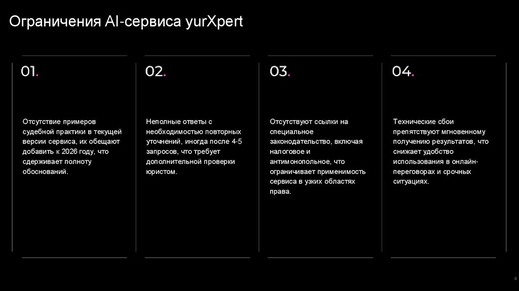 Ограничения AI-сервиса yurXpertОтсутствие примеров