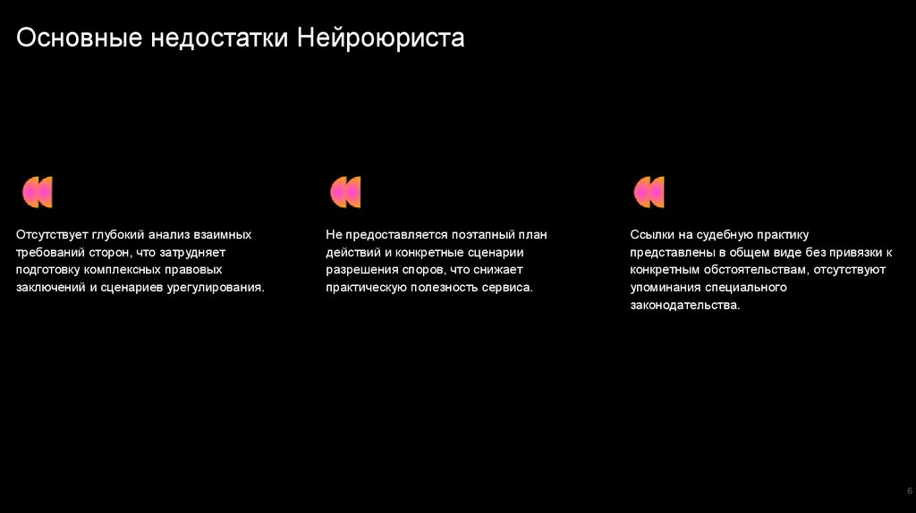 Основные недостатки НейроюристаОтсутствует глубокий анализ взаимных