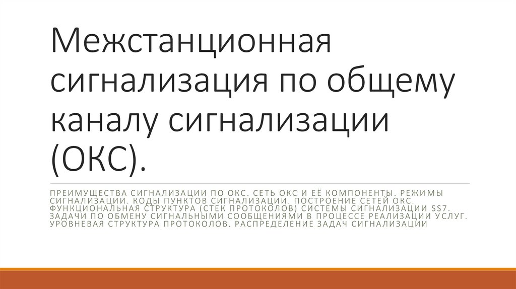 ПРЕИМУЩЕСТВА СИГНАЛИЗАЦИИ ПО ОКС. СЕТЬ ОКС И ЕЁ КОМПОНЕНТЫ. РЕЖИ МЫСИГНАЛИЗАЦИИ. КОДЫ ПУНКТОВ СИГНАЛИЗАЦИИ. ПОСТРОЕНИЕ СЕТЕЙ ОКС.