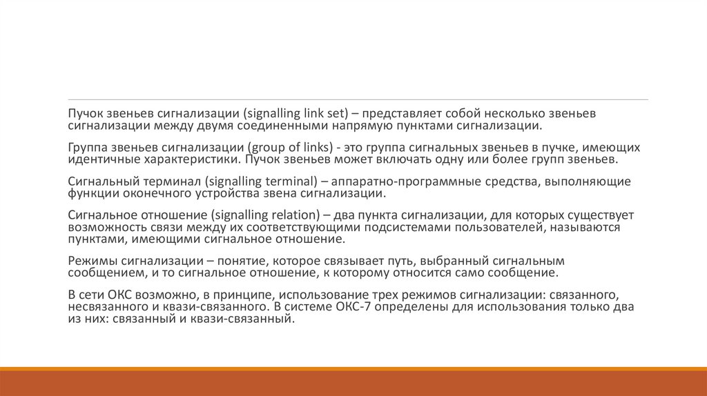 Звено сигнализации (signalling link) – звено сигнализации в системе ОКС-7 используется для передачи