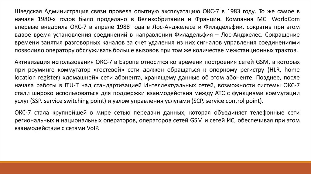 Активизация использования ОКС-7 в Европе относится ко времени построения сетей GSM, в которых
