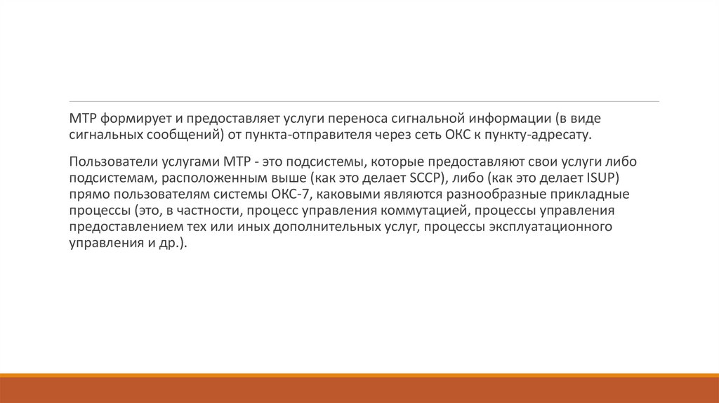 Пользователи услугами MTP - это подсистемы, которые предоставляют свои услуги либо