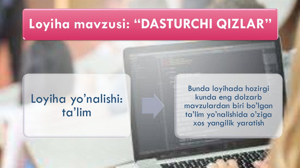 Loyiha mavzusi: “DASTURCHI QIZLAR”Loyiha yo’nalishi: