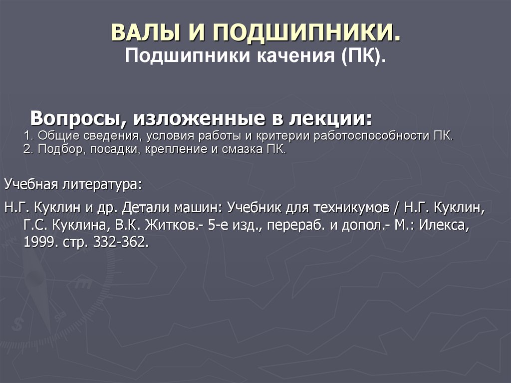 ВАЛЫ И ПОДШИПНИКИ.Подшипники качения (ПК).