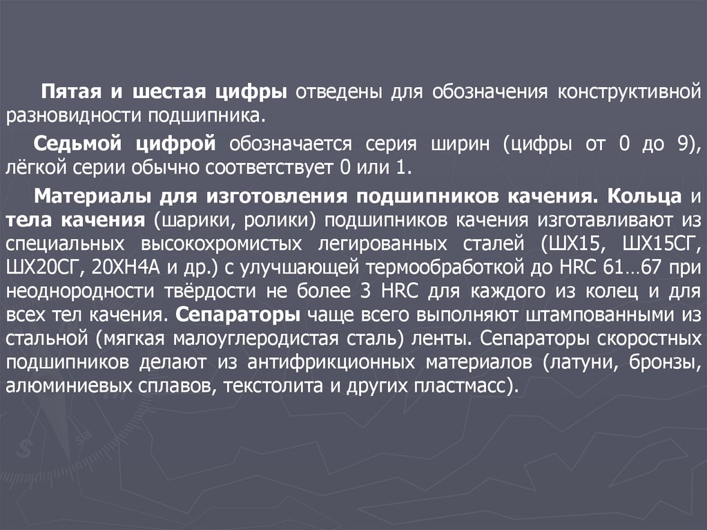 Пятая и шестая цифры отведены для обозначения конструктивнойразновидности подшипника.