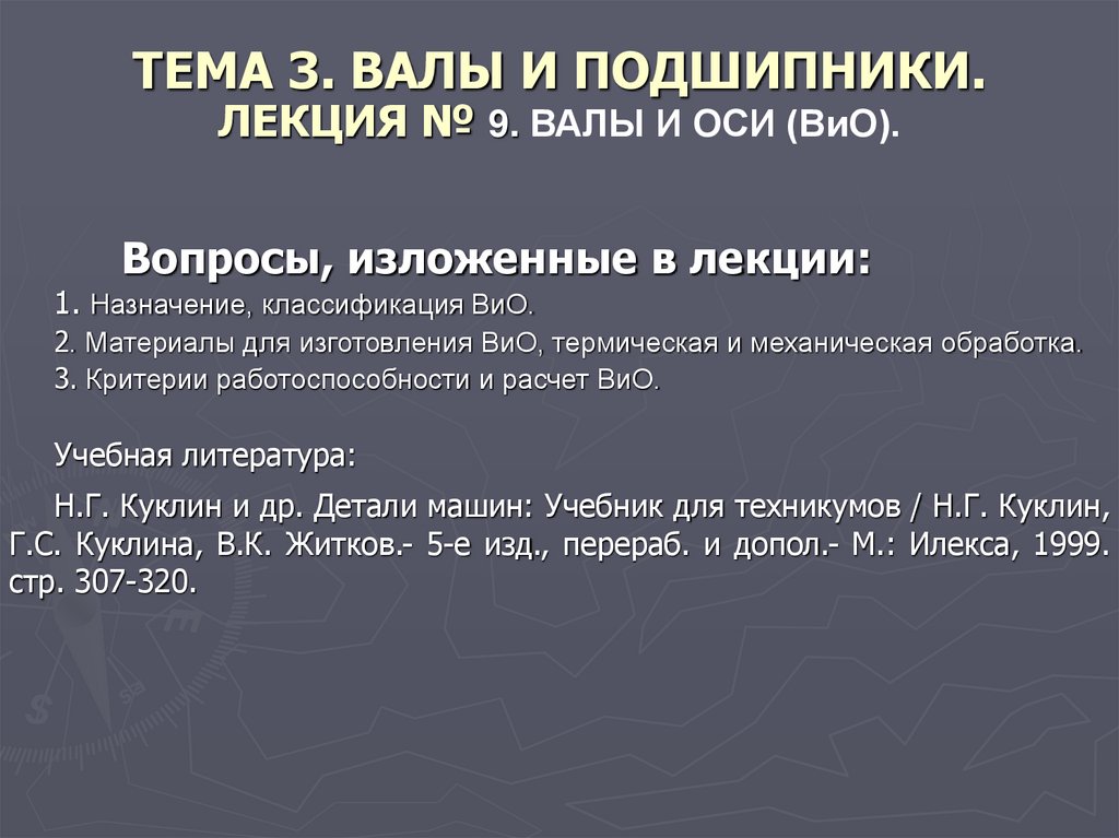ТЕМА 3. ВАЛЫ И ПОДШИПНИКИ.ЛЕКЦИЯ № 9. ВАЛЫ И ОСИ (ВиО).