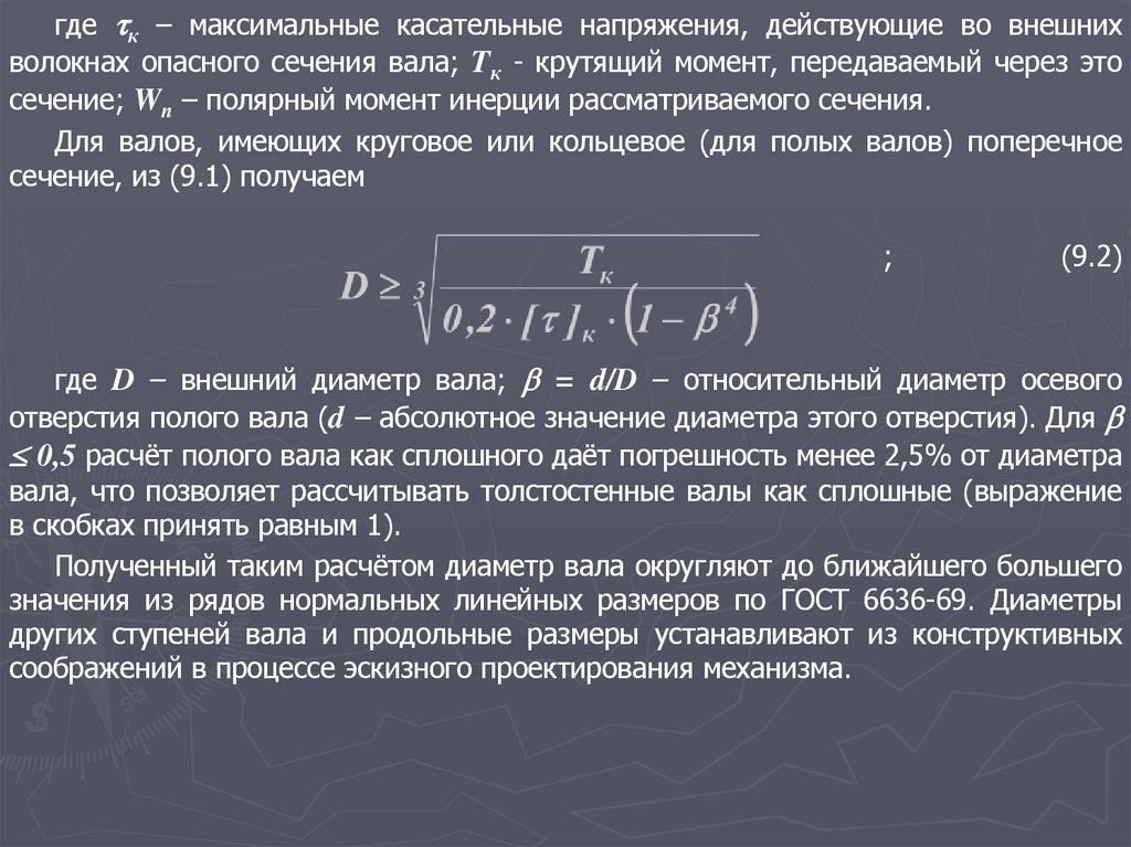 допустимый удельный угол закручивания вала–0,025 [ 0] 1,0 градус/м в