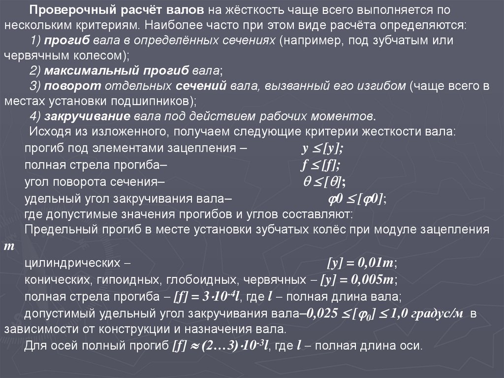 Исходя из изложенного, получаем следующие критерии жесткости вала: