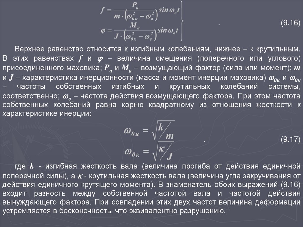 Верхнее равенство относится к изгибным колебаниям, нижнее к крутильным.