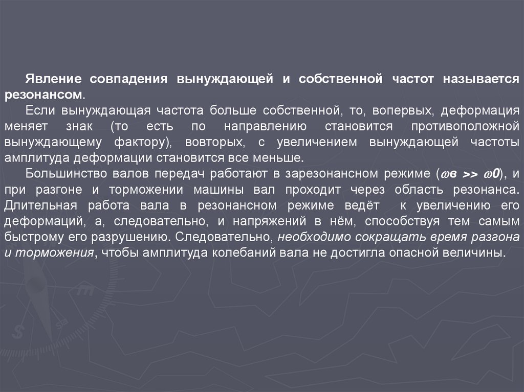Большинство валов передач работают в зарезонансном режиме ( в >> 0), и