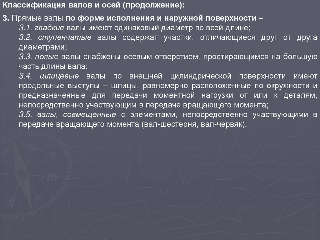 Классификация валов и осей (продолжение):3. Прямые валы по форме исполнения и наружной поверхности