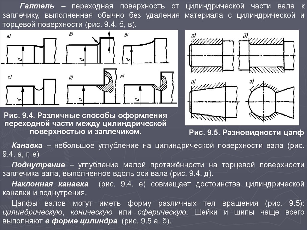 Цапфы валов могут иметь форму различных тел вращения (рис. 9.5):