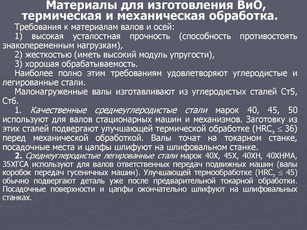 2. Материалы для изготовления ВиО, термическая и механическая обработка.