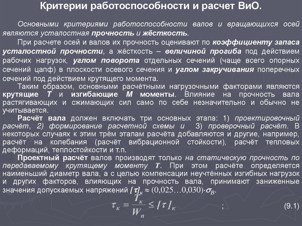 3. Критерии работоспособности и расчет ВиО.