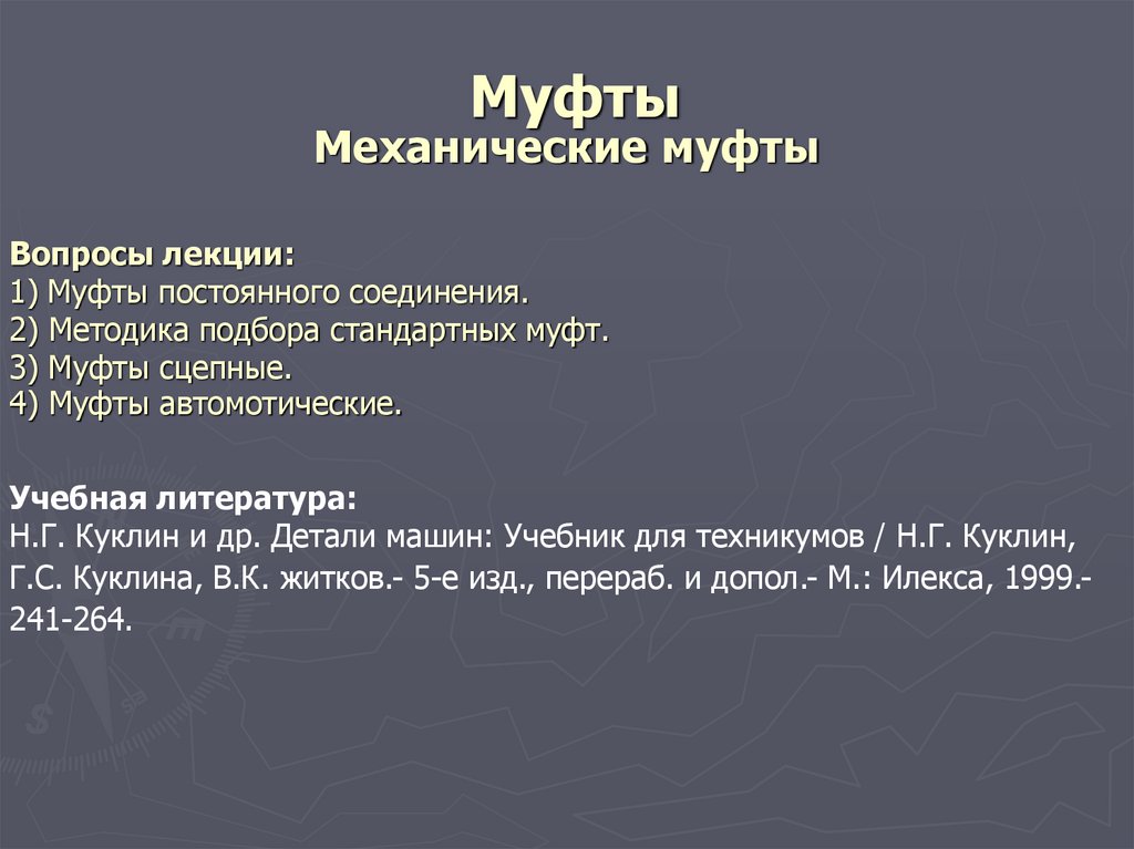 Муфта (от немецкого die Muffe) – устройство для соединения валов,