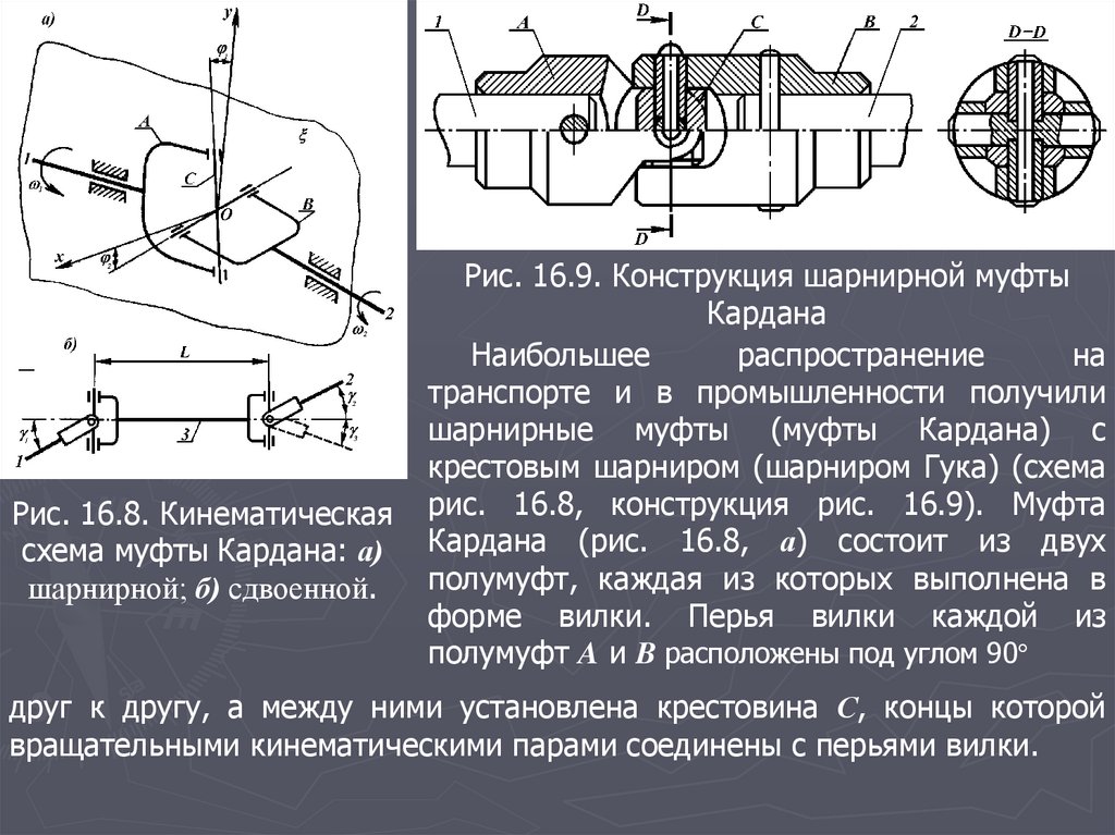 Рис. 16.8. Кинематическаясхема муфты Кардана: а)