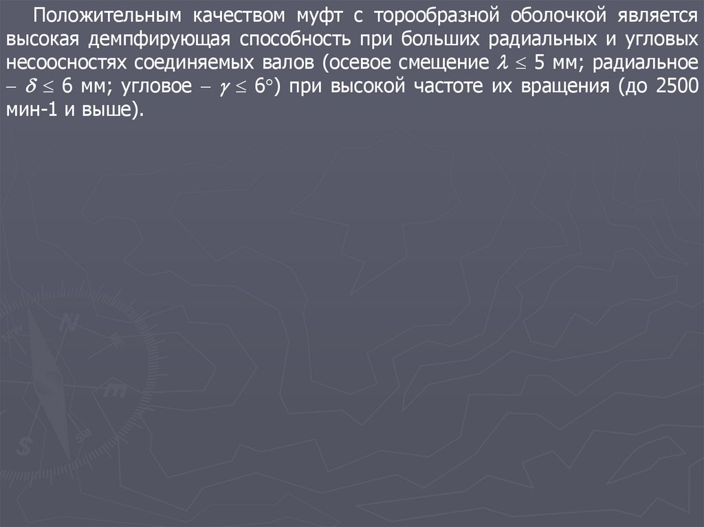 Положительным качеством муфт с торообразной оболочкой являетсявысокая демпфирующая способность при больших радиальных и угловых