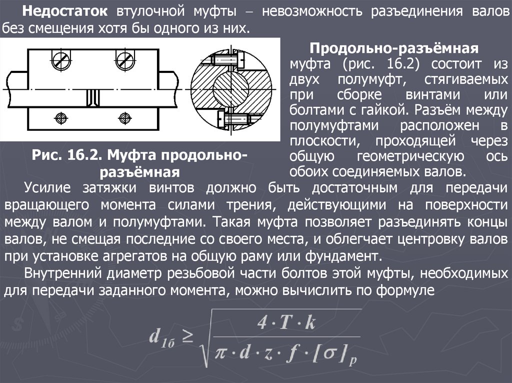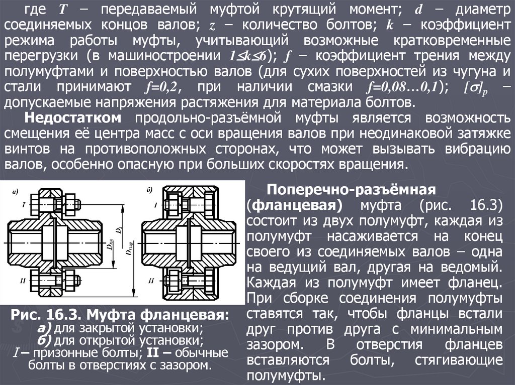16.11. Муфта состоит из двух полумуфт, снабжённых фланцами, и