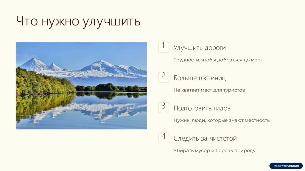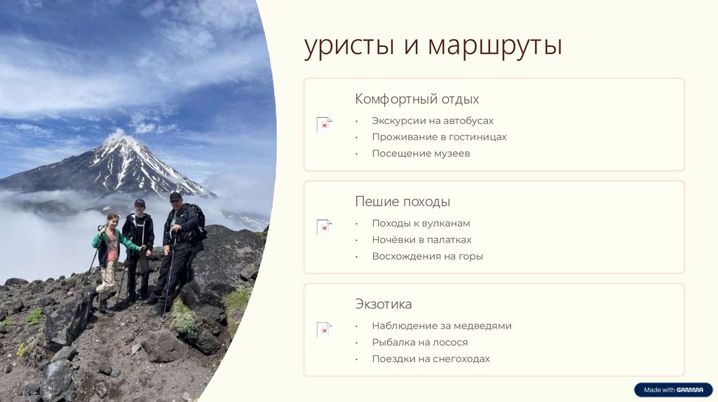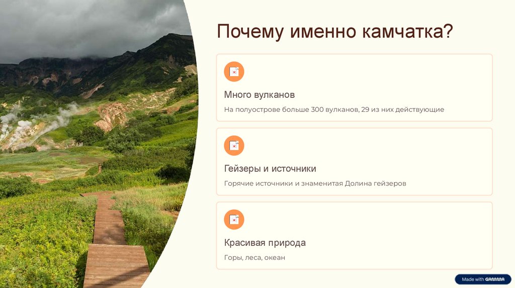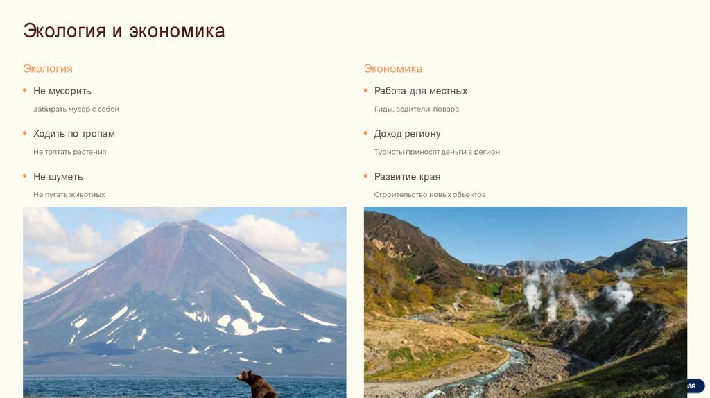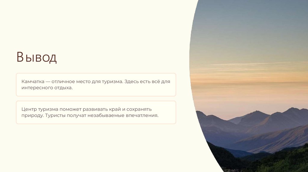 ВыводКамчатка — отличное место для туризма. Здесь есть всё для