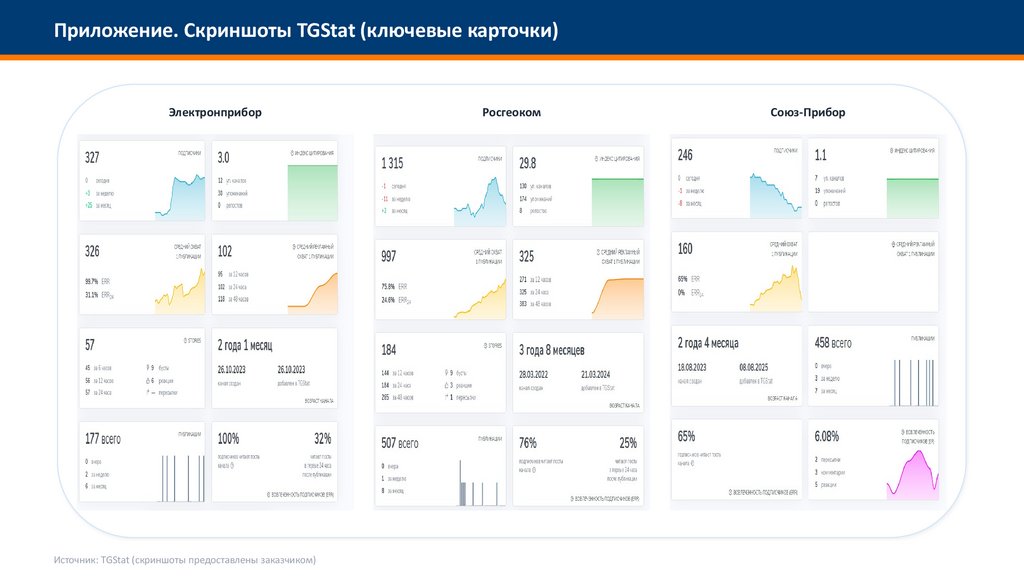Приложение. Скриншоты TGStat (ключевые карточки)Электронприбор