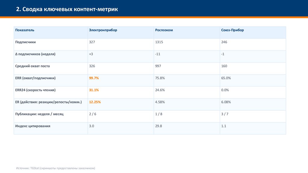 2. Сводка ключевых контент-метрикПоказатель