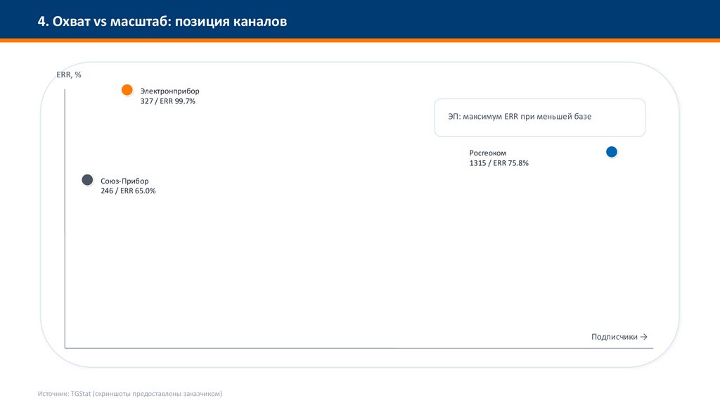 4. Охват vs масштаб: позиция каналовERR, %