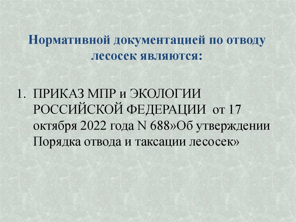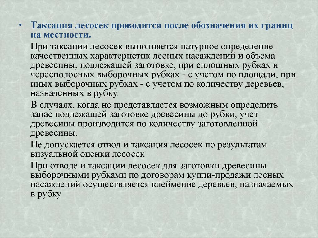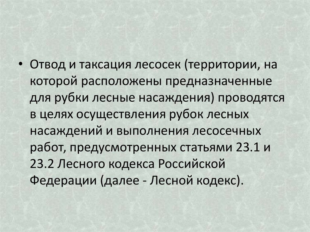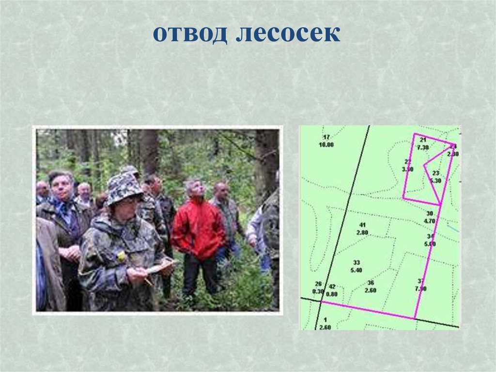 • Отвод и таксация лесосек (территории, накоторой расположены предназначенные