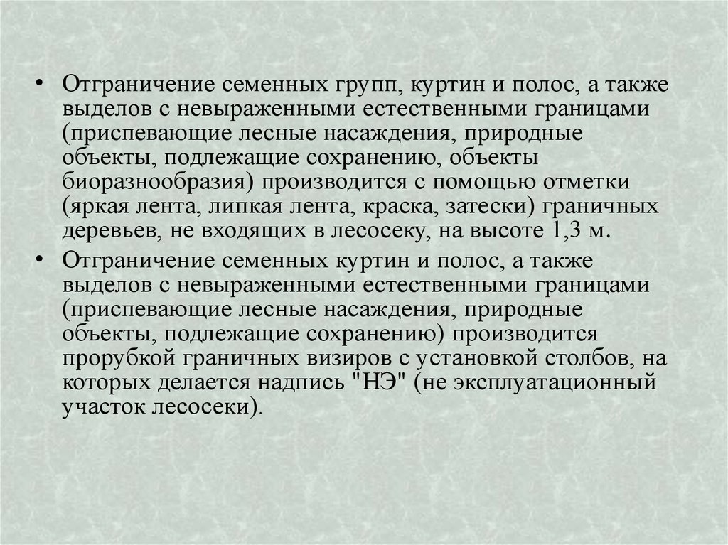 • Отграничение семенных групп, куртин и полос, а такжевыделов с невыраженными естественными границами