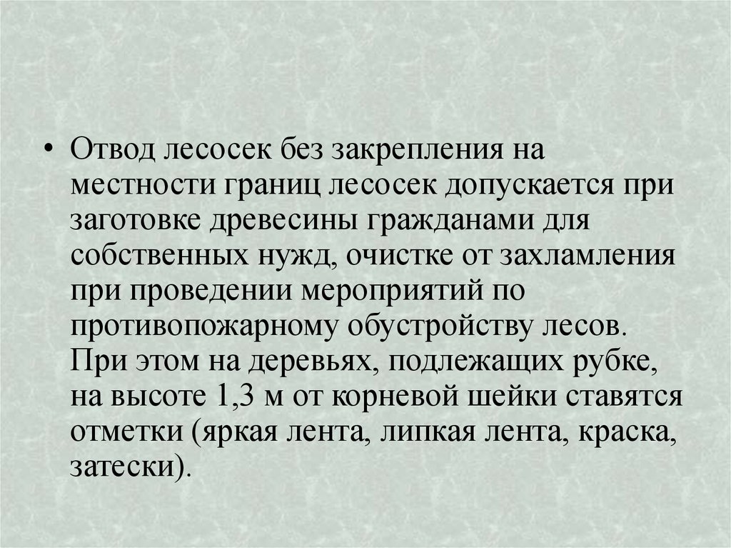 • Отвод лесосек без закрепления наместности границ лесосек допускается при