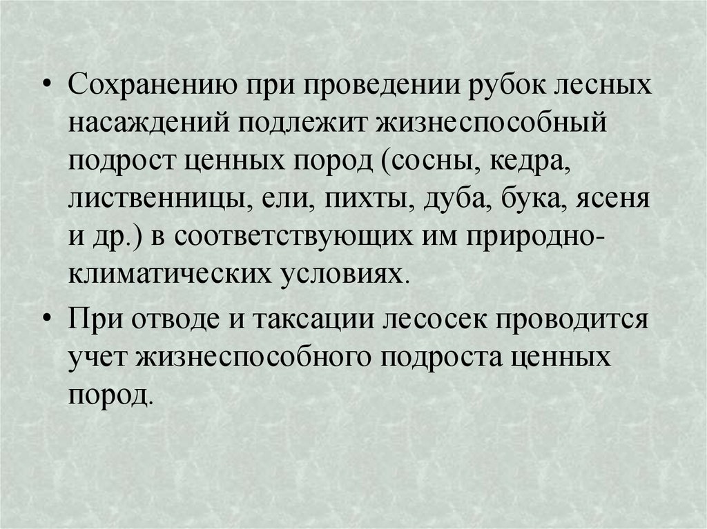 • Сохранению при проведении рубок лесныхнасаждений подлежит жизнеспособный