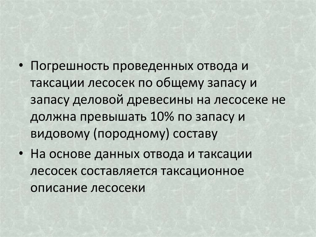 • Погрешность проведенных отвода итаксации лесосек по общему запасу и