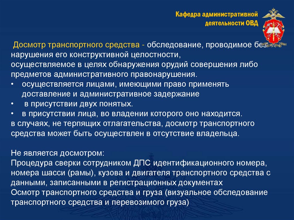 в случаях, не терпящих отлагательства, досмотр транспортного