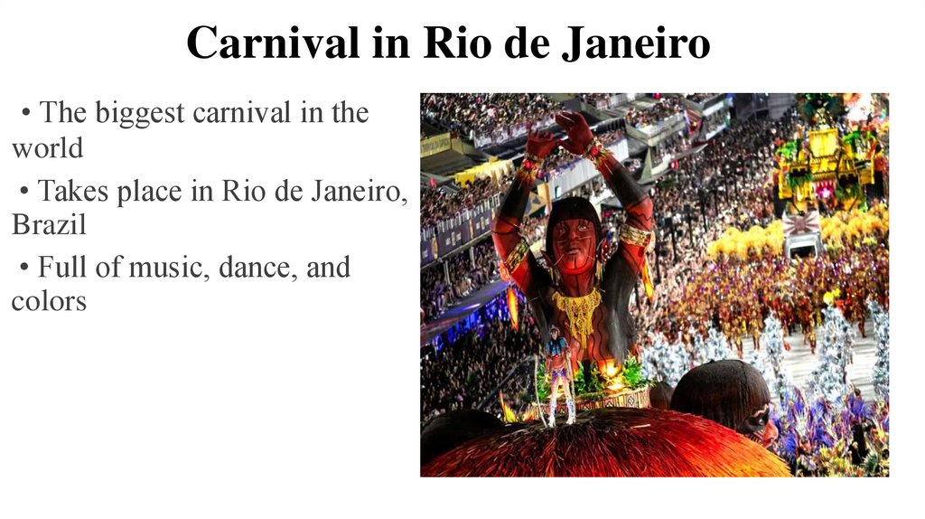 Carnival in Rio de Janeiro• The biggest carnival in the
