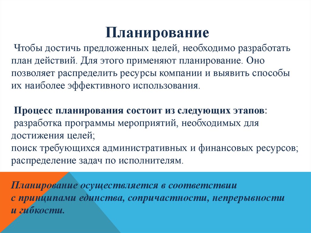 ПланированиеЧтобы достичь предложенных целей, необходимо разработать