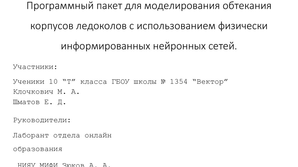 1. Программный пакет для моделирования обтекания корпусов ледоколов с использованием физически информированных нейронных сетей.
