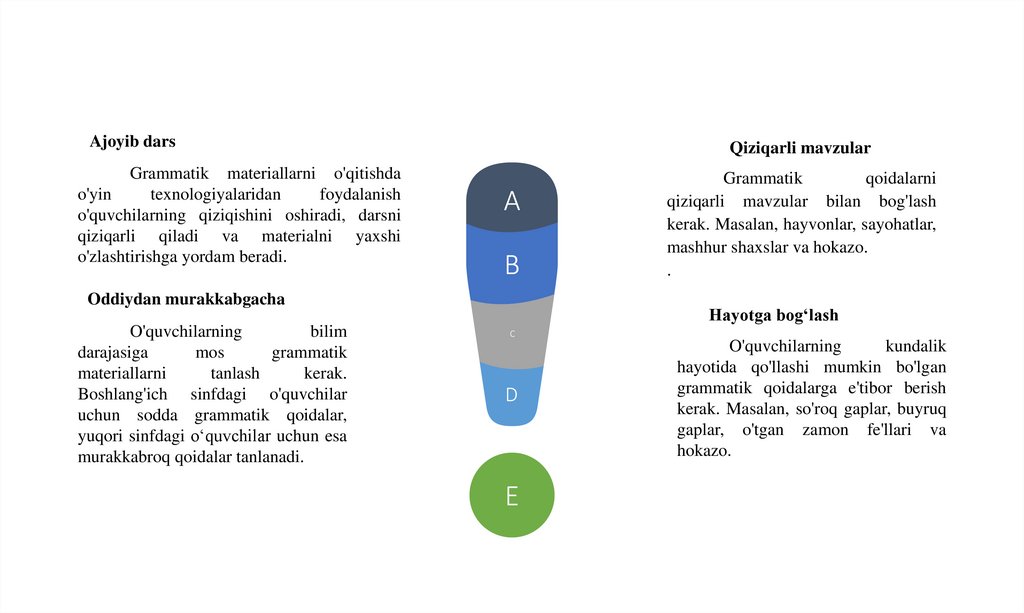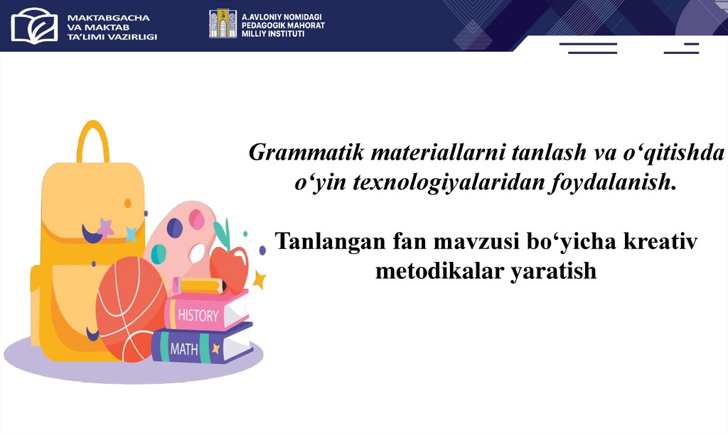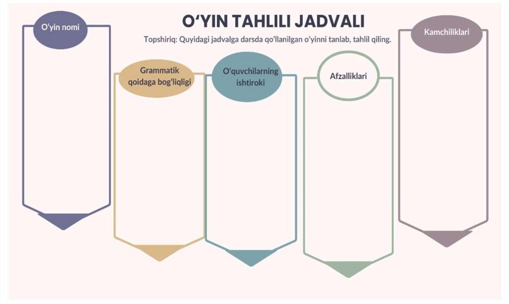 Grammatik materiallarni tanlash va o‘qitishdao‘yin texnologiyalaridan foydalanish.