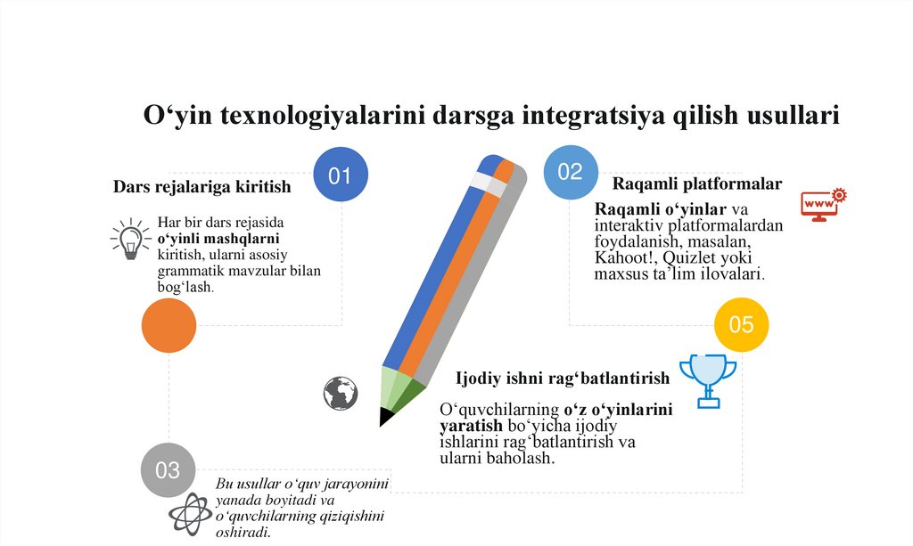 O‘yin texnologiyalarini darsga integratsiya qilish usullariDars rejalariga kiritish