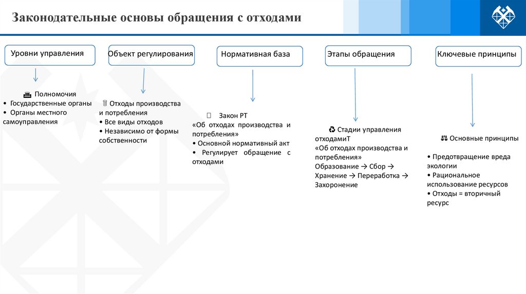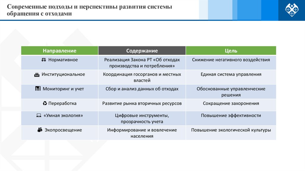 • Рассмотреть роль переработки отходов и использования вторичных ресурсов в системе управления отходами.
