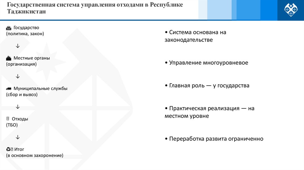 Проанализировать систему обращения с отходами в Республике Таджикистан и особенности управления твердыми