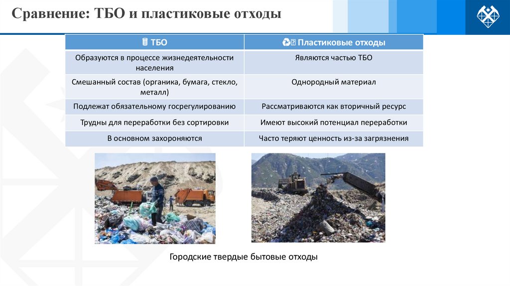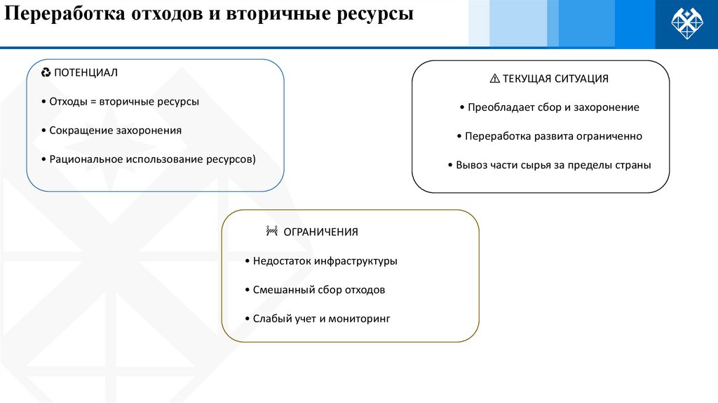 • Недостаточное развитие переработки отходов и преобладание практики их захоронения.