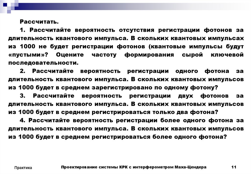 Рассчитать.1. Рассчитайте вероятность отсутствия регистрации фотонов за