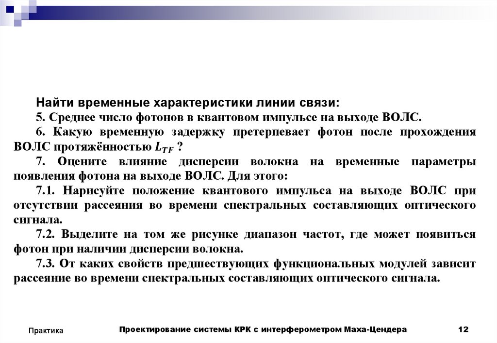 Найти временные характеристики линии связи:5. Среднее число фотонов в квантовом импульсе на выходе ВОЛС.
