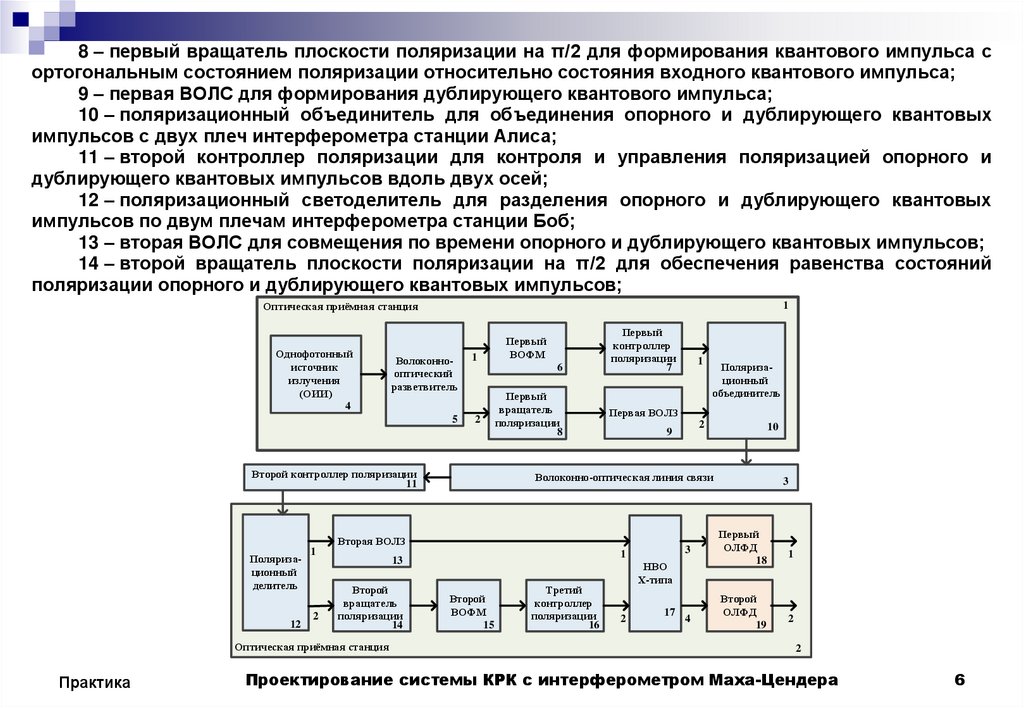 14 – второй вращатель плоскости поляризации на π/2 для обеспечения равенства состояний