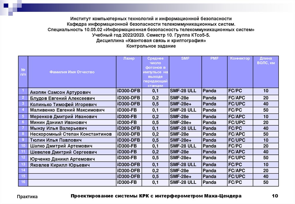 Институт компьютерных технологий и информационной безопасностиКафедра информационной безопасности телекоммуникационных систем.