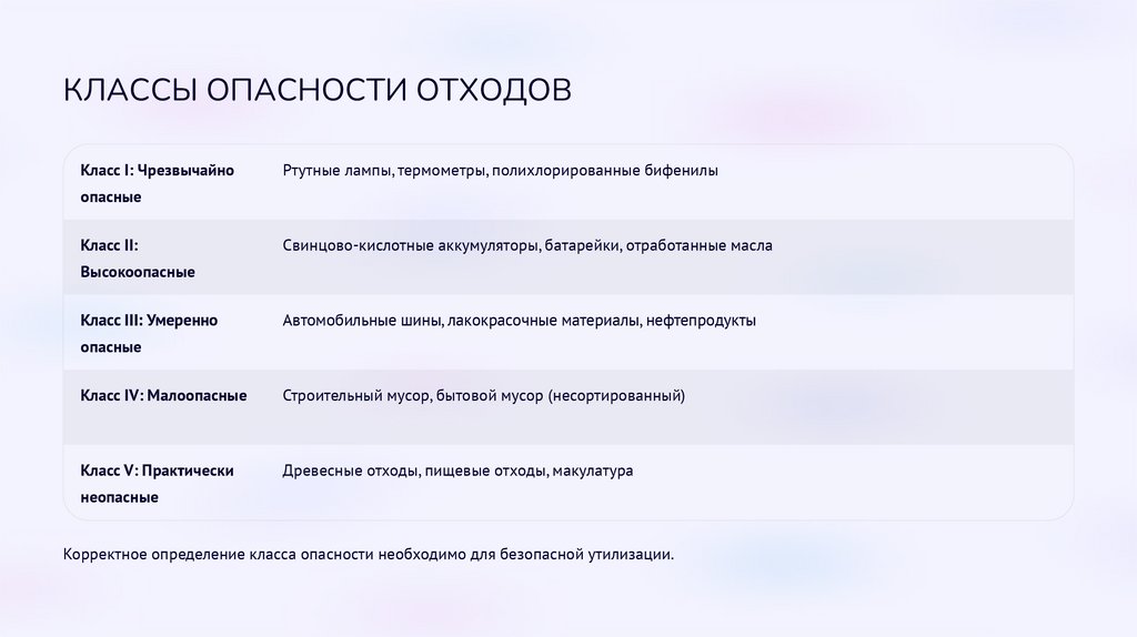 Корректное определение класса опасности необходимо для безопасной утилизации.