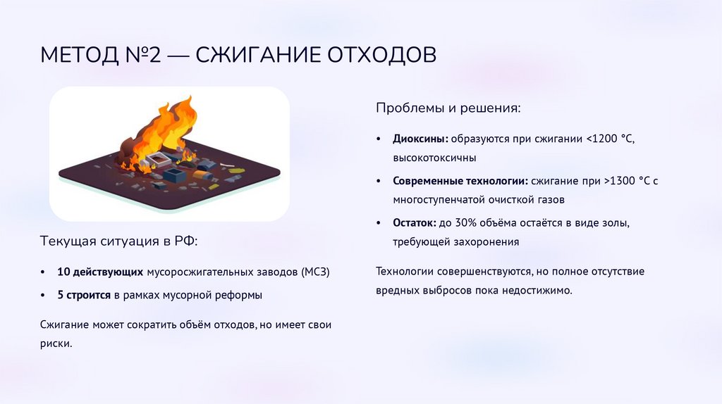 МЕТОД №2 — СЖИГАНИЕ ОТХОДОВПроблемы и решения: