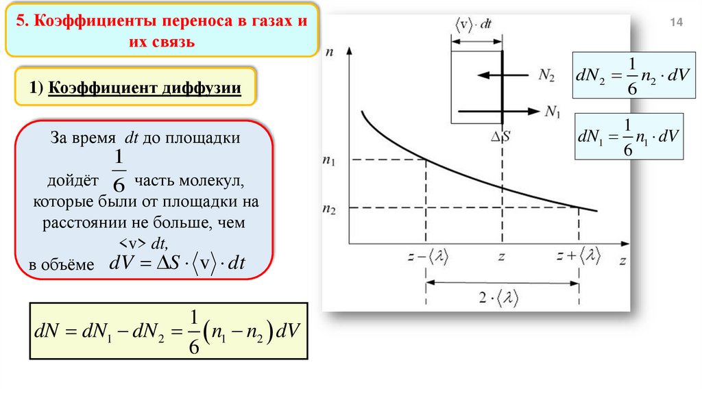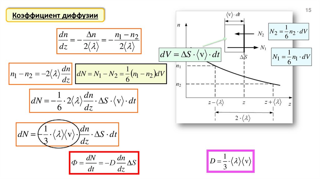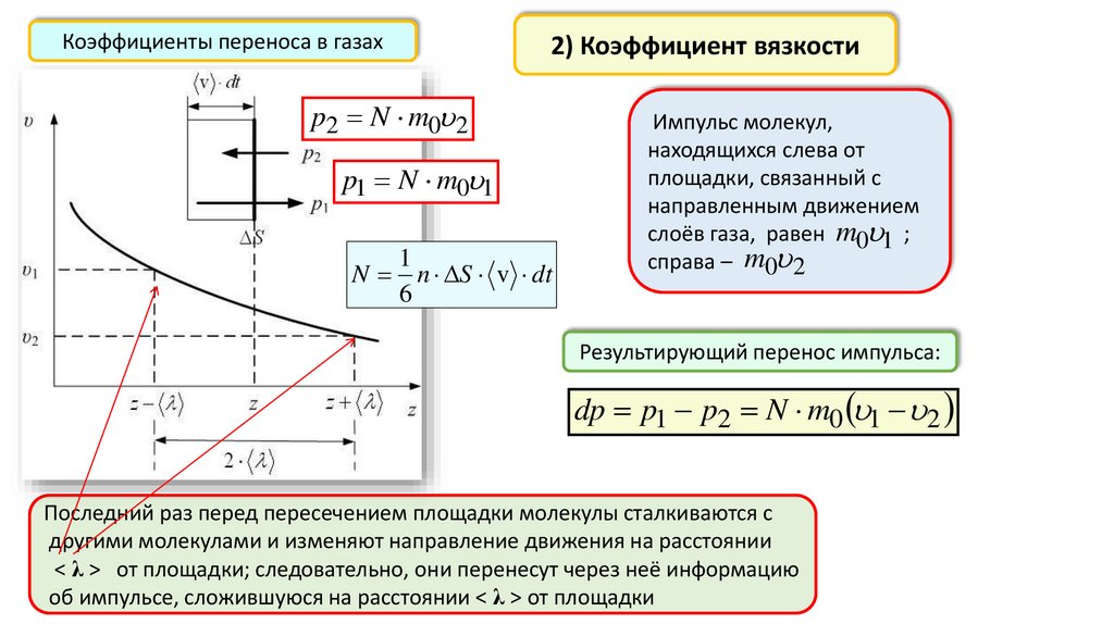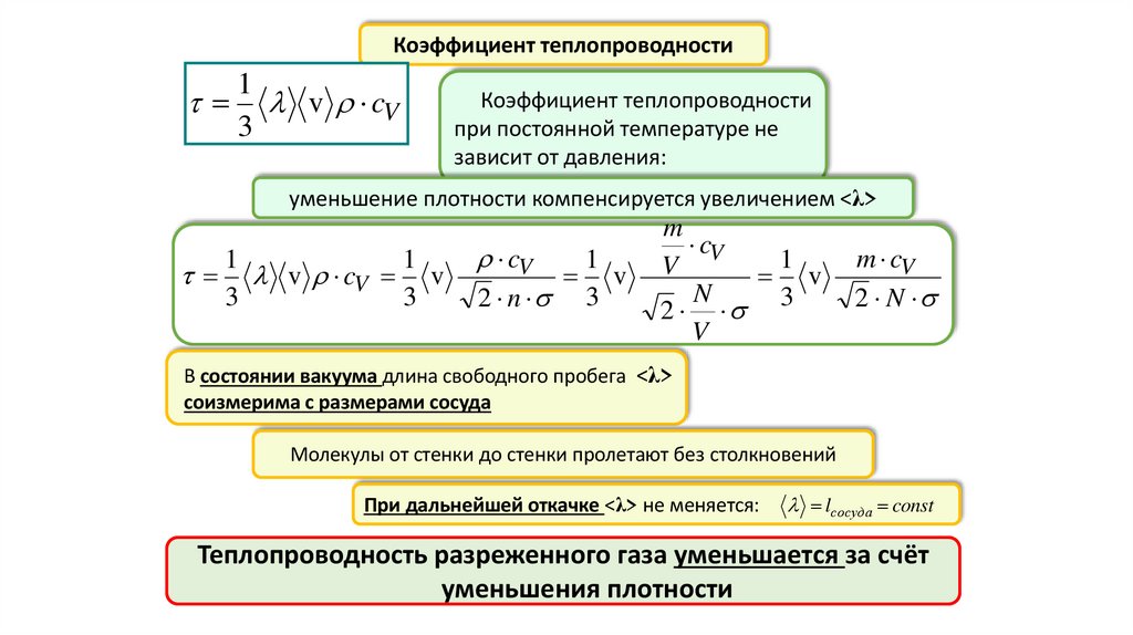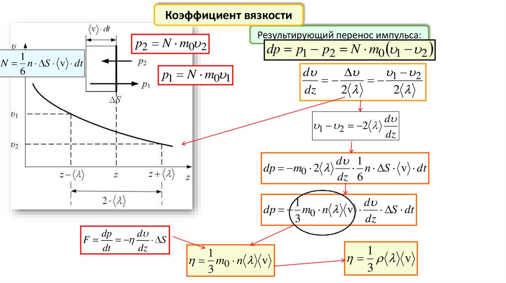 интервал времени ∆t молекула пройдет ломаный путь vOT ∆t и столкнется со всеми молекулами,