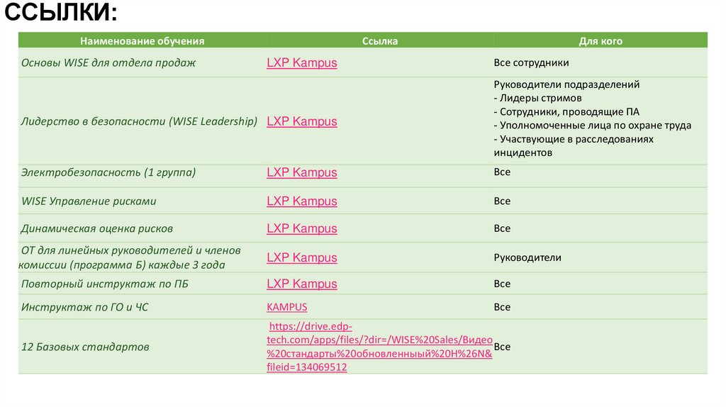 Ознакомление со структурой WISE в Sales (Induction for Sales), встреча с Safety (online, offline)
